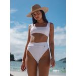 Bikini top con tazas desmontables y less tiro alto con doble cintura.