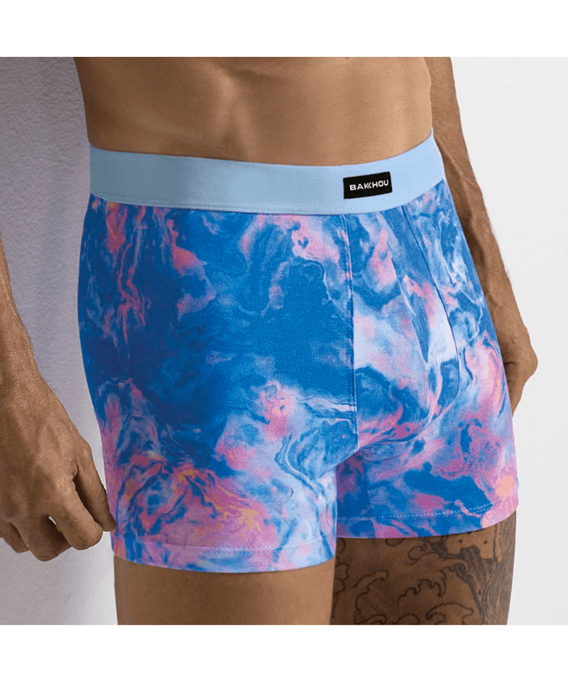 Boxer algodón y lycra. Estampado batik dos colores. -Marca Bakhou -Composición: 95% algodón 5% elastano. -Color: aqua. -Talles: M - L - XL. SKU 2039