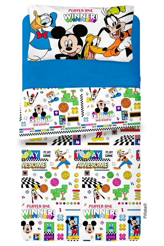 Juego de sábanas mickey play 1 y 1/2 plaza piñata $ 37.340$ 28.005Precio sin Imp. Nacionales: $23.145