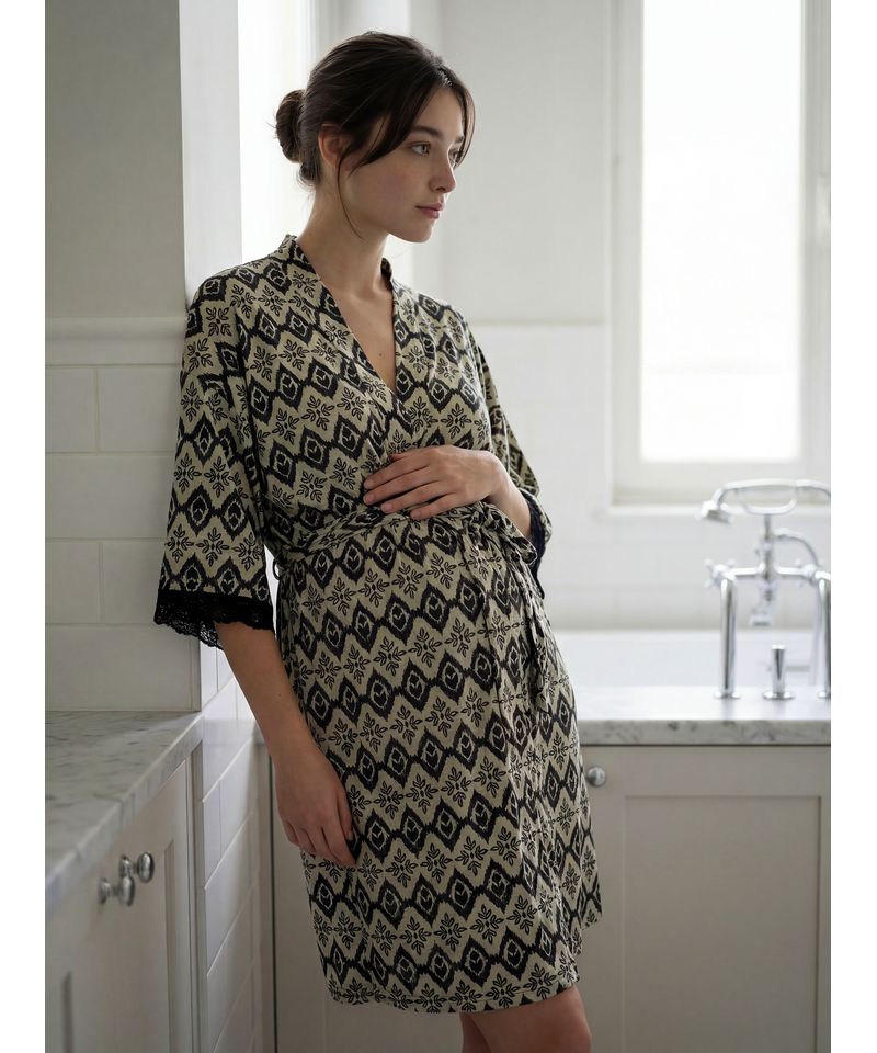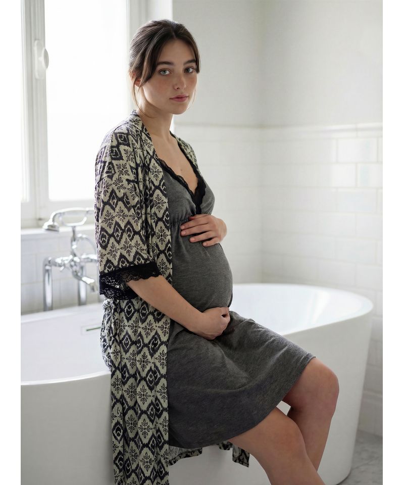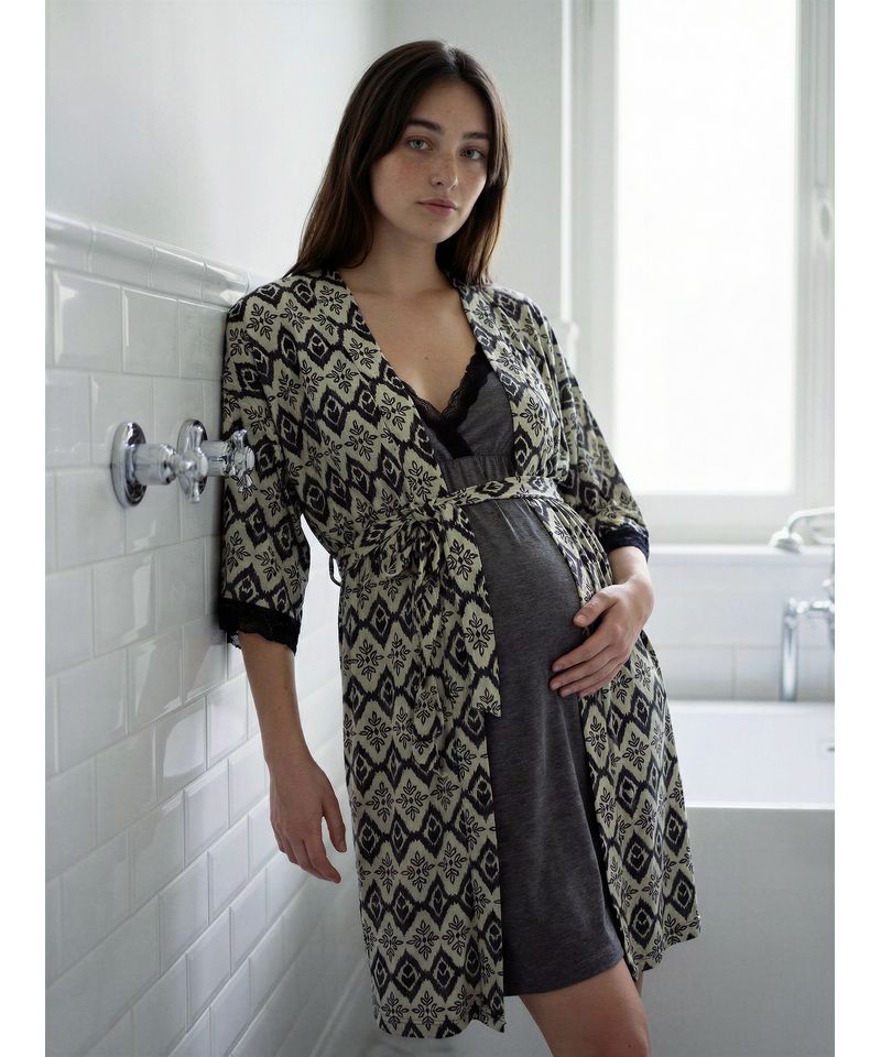 La bata Mom de Mariené es el complemento ideal para acompañar la maternidad con abrigo liviano y comodidad. Confeccionada en jersey estampado, brinda una sensación agradable al contacto con la piel y un calce relajado que se adapta al cuerpo durante el embarazo y el post parto.