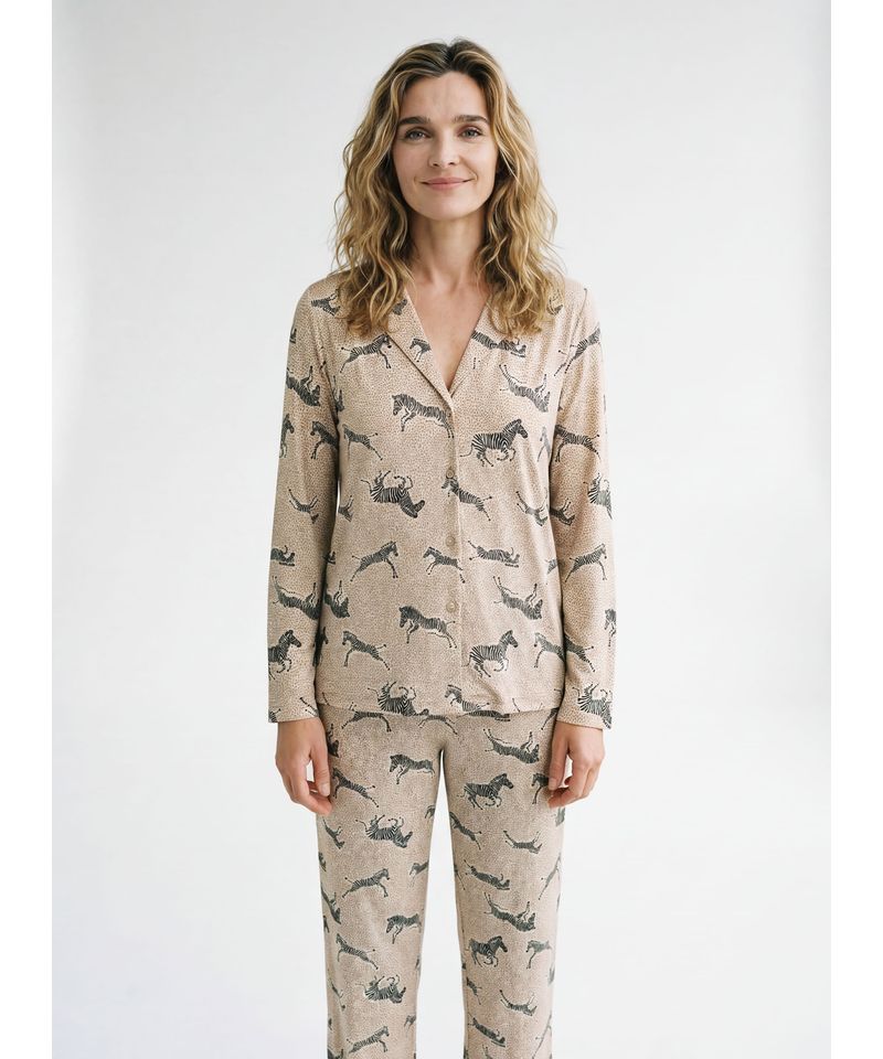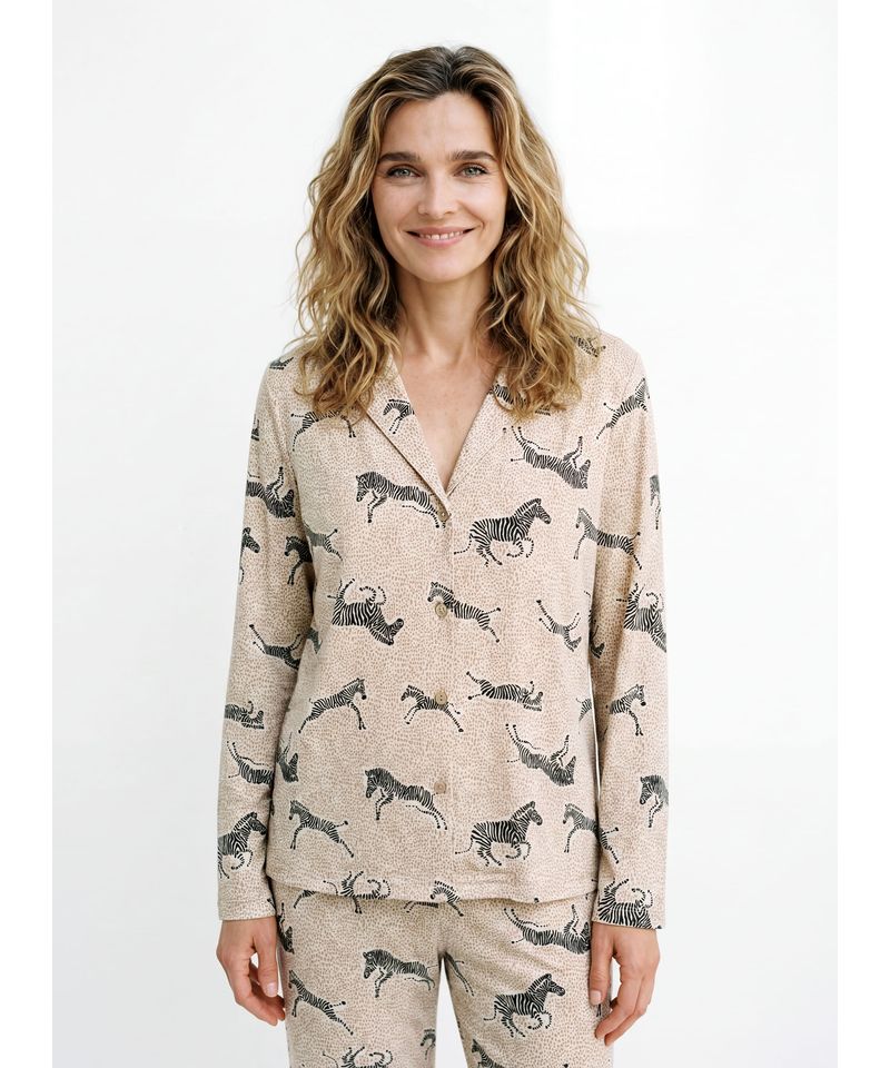 El pijama Night Safari combina comodidad y practicidad en un diseño pensado para el descanso diario. Confeccionado en jersey estampado, ofrece una sensación liviana y agradable, ideal para usar durante la noche o para estar en casa con total confort.